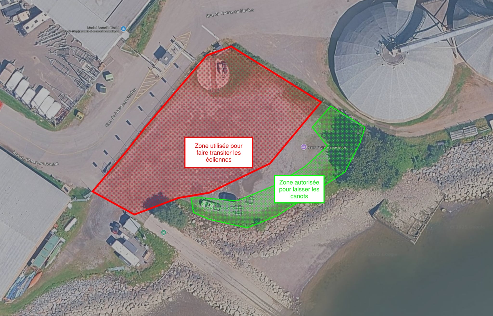 Transport Canada (Port de Québec) doit utiliser une partie importante de notre stationnement afin de procéder à la sortie de pales d’éoliennes. Cette opération est hors de notre contrôle. Pour le moment, il est donc interdit de se stationner dans la zone concernée (voir plan plus bas) du lundi au vendredi de 6 h 30 à 13 h 30, et ce, du 1er novembre 2025 au 31 janvier 2026 ou jusqu’à nouvel ordre. Pendant cette période :
